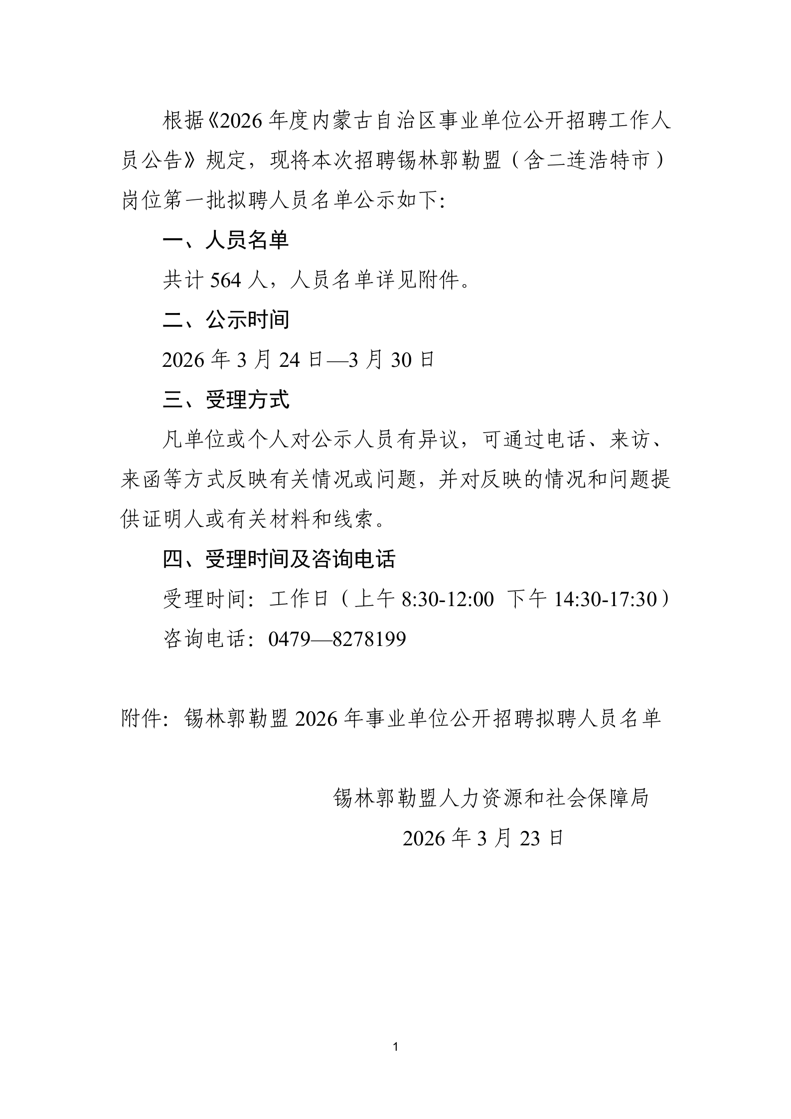 2026年度內(nèi)蒙古自治區(qū)事業(yè)單位公開(kāi)招聘(錫林郭勒盟崗位)擬聘人員公示(一)