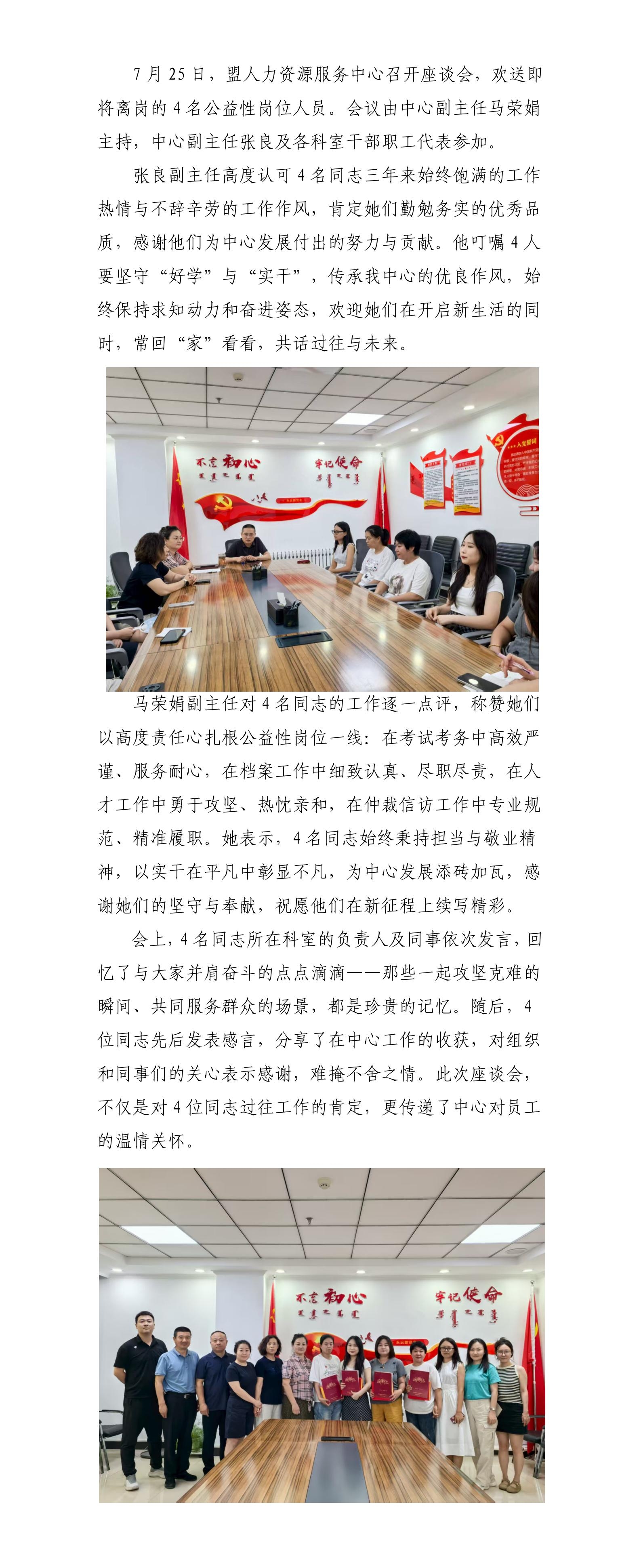 不舍離別情 祝福新征程——盟人力資源服務(wù)中心歡送公益性崗位人員