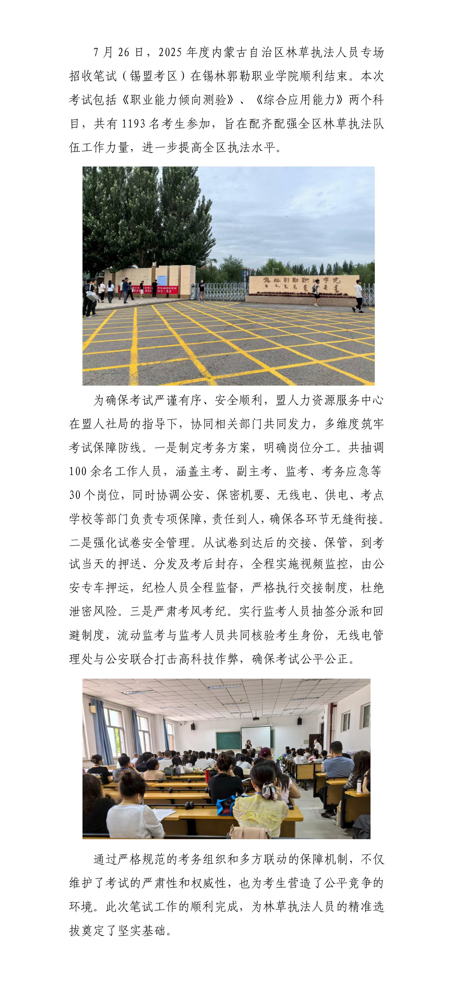 2025年度內(nèi)蒙古自治區(qū)林草執(zhí)法人員專場招收筆試工作(錫盟考區(qū))順利結束