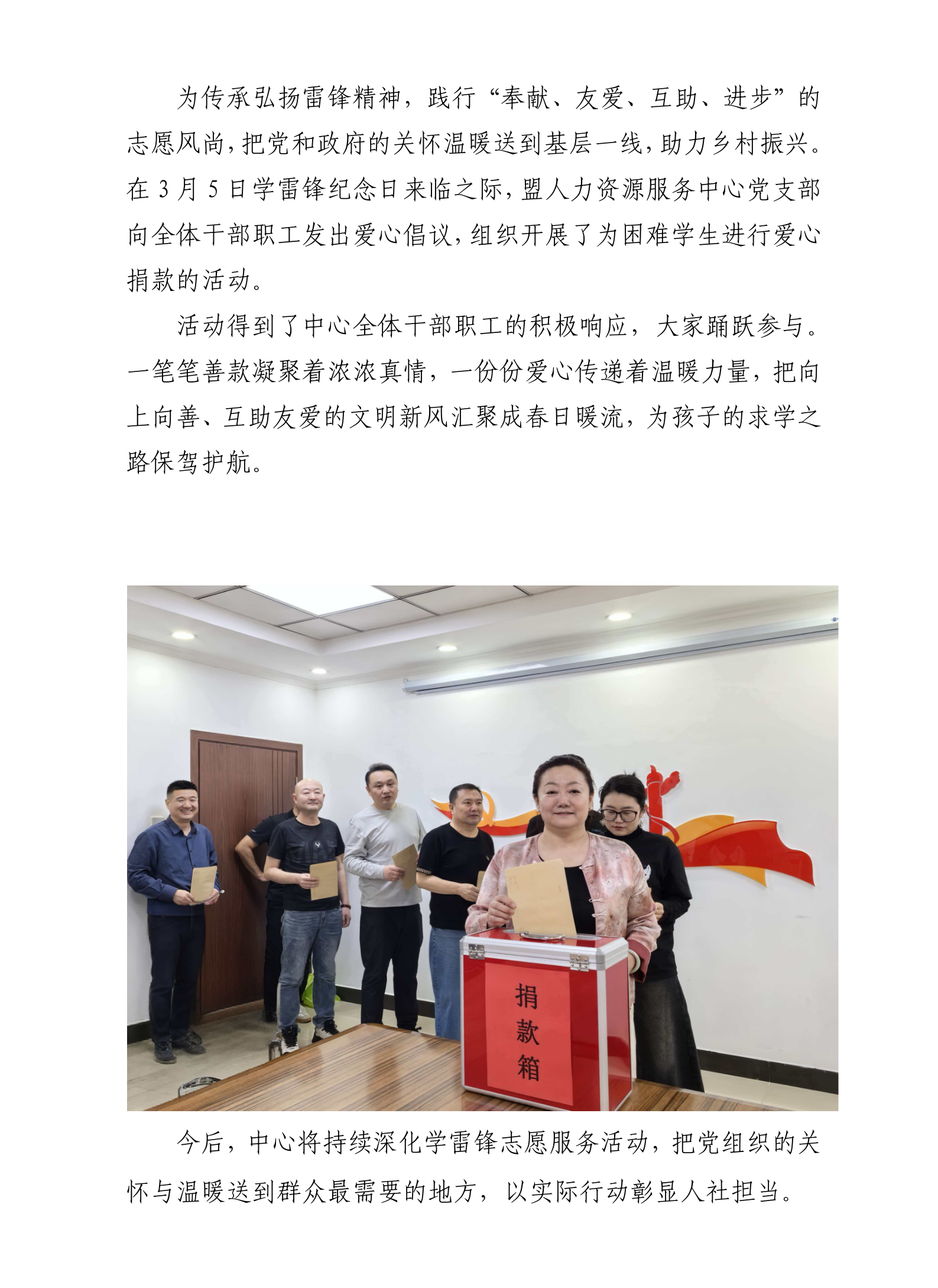 愛心助學(xué)暖人心 雷鋒精神踐于行 —盟人力資源服務(wù)中心黨支部開展愛心捐款活動